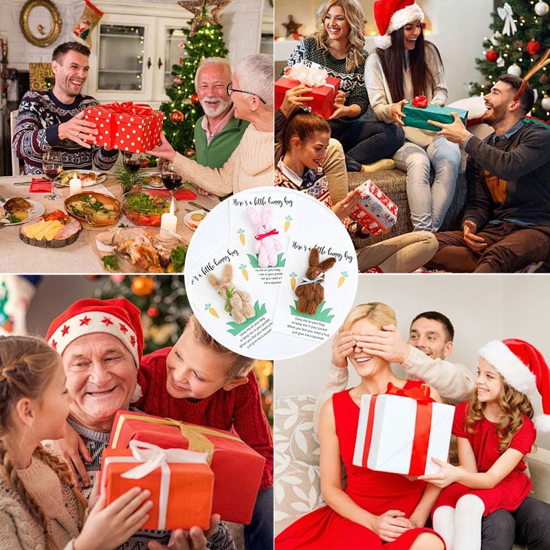 Choose from four lovely color options: brown, pink, white, or light brown. Each bunny is perfectly sized for carrying around and comes with a sweet, sentimental message that will warm anyone's heart.