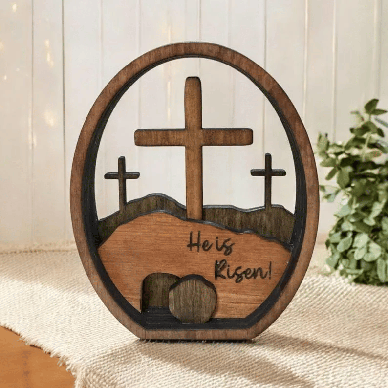 Bring the true spirit of Easter into your home with this beautifully handcrafted Christian wooden decoration – a meaningful way to celebrate the season!