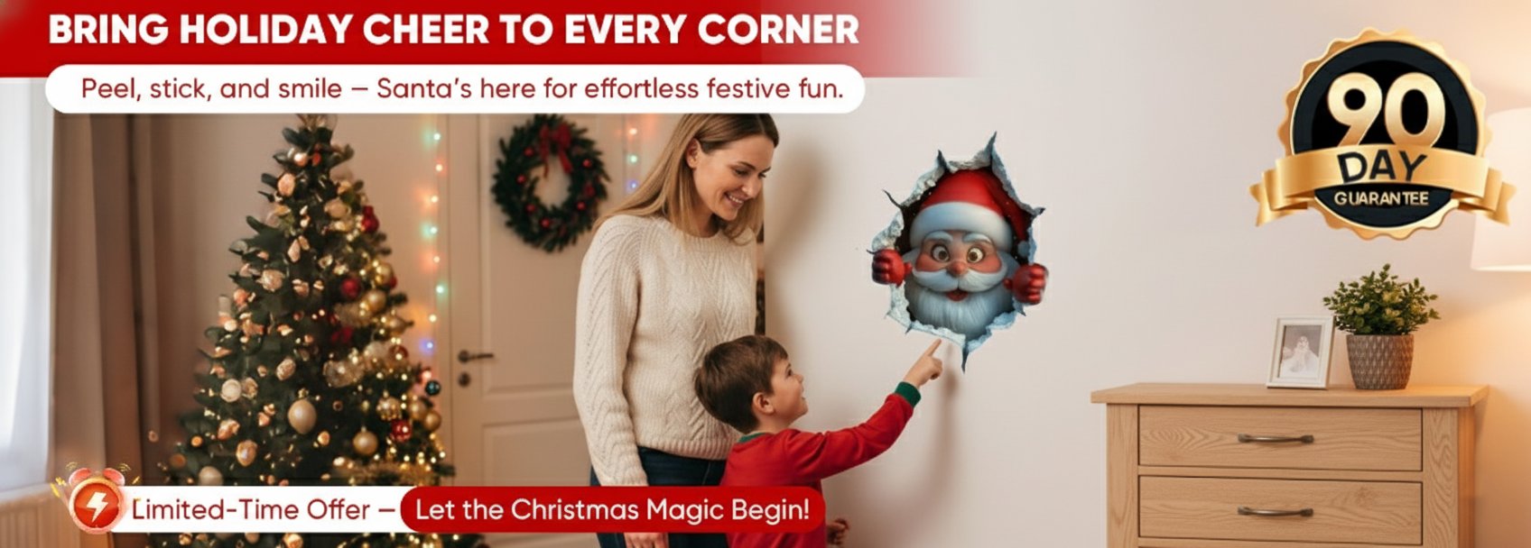 Absolutely adorable! Santa peeking through my door made my kids laugh nonstop. Super easy to stick on and even easier to remove — no mess at all. Love it!