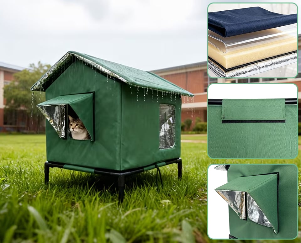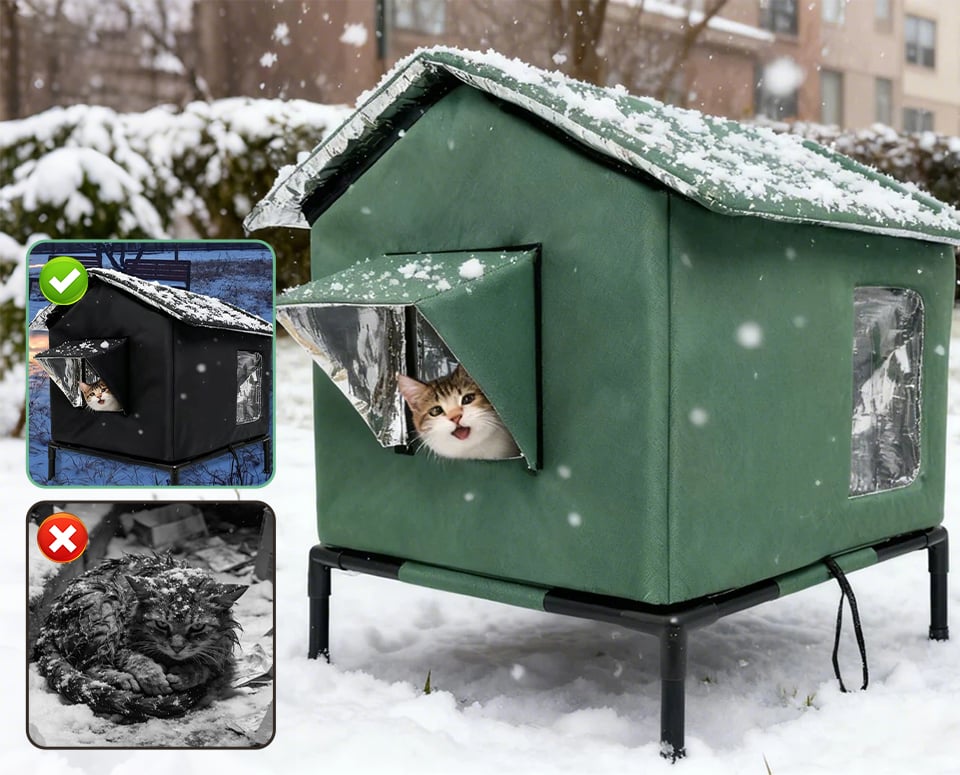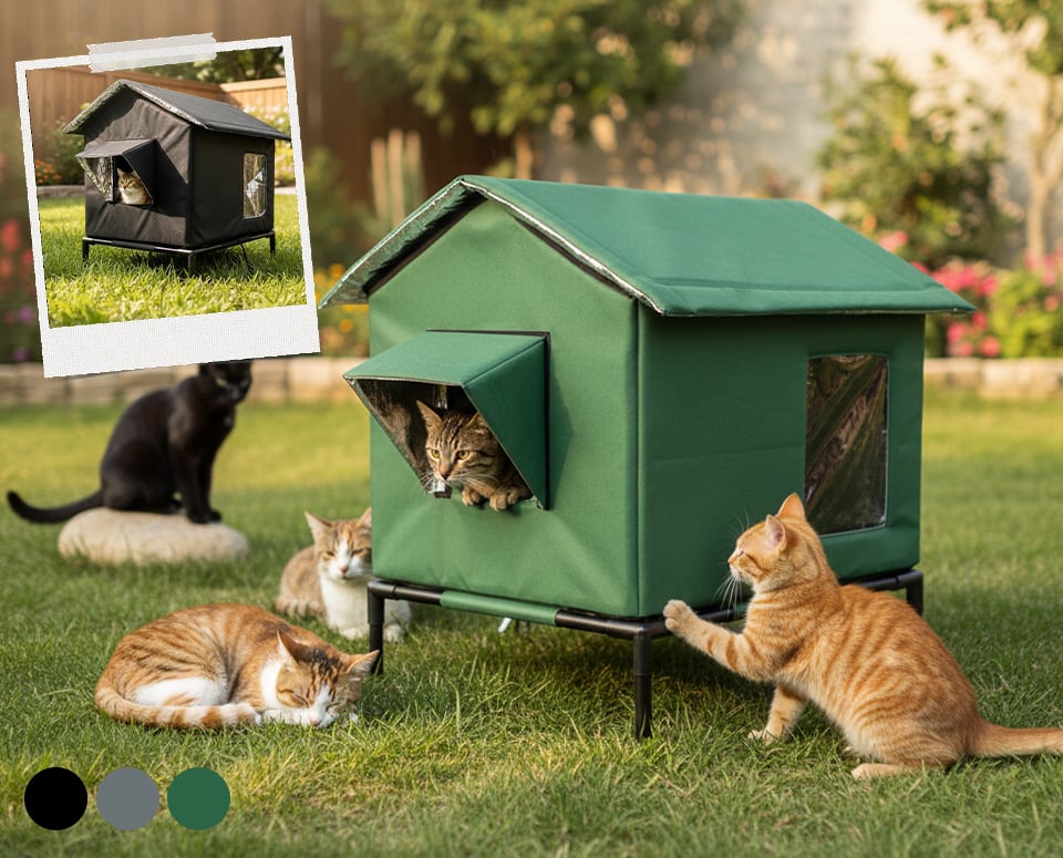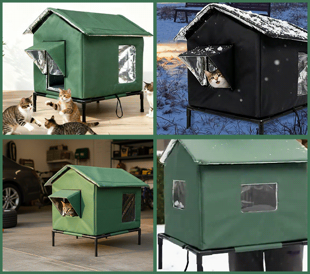 Discover a rainproof, insulated, elevated cat shelter that keeps stray cats warm, dry, and safe in any season — outdoors or indoors.
