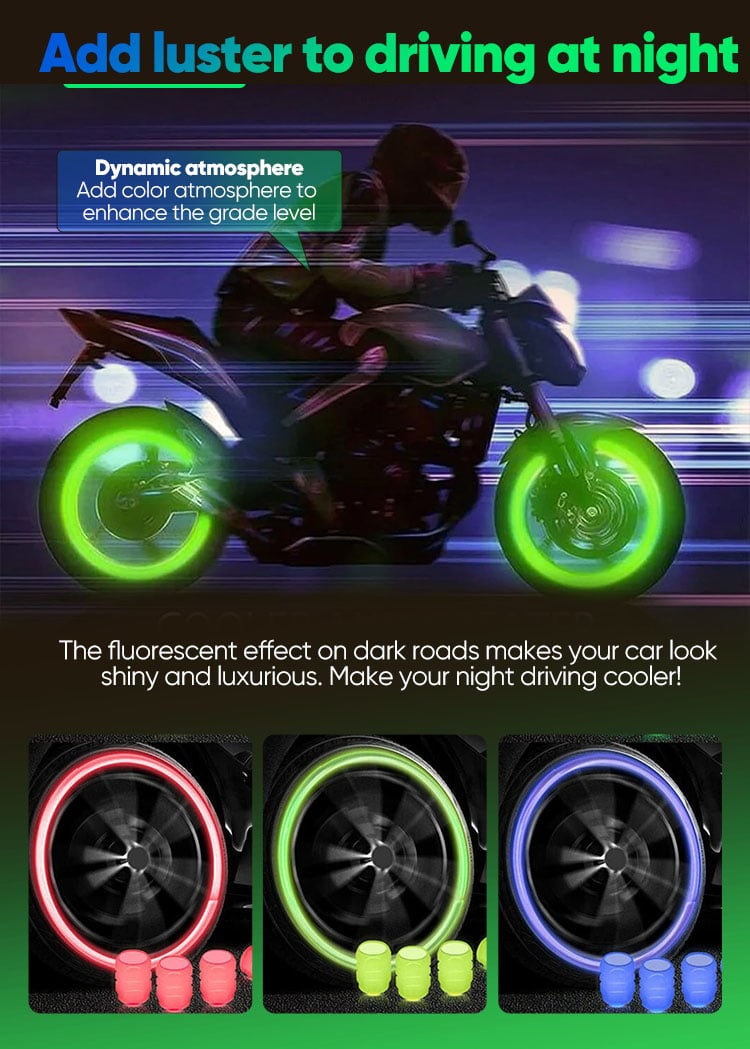 I recently acquired a set of these universal fluorescent tire valve caps and I have to say, they're catching my eye! These little caps are not only functional but also add a cool, flashy touch to my vehicle.