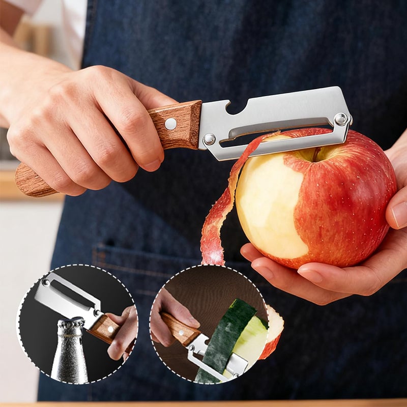 Multi-Purpose Functionality: Ideal for peeling a variety of fruits and vegetables and includes an integrated bottle opener in the handle for added kitchen convenience.