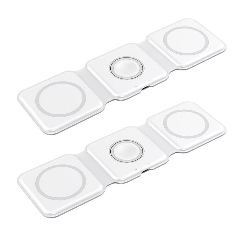 Foldable 3-in-1 Wireless Charger solves the problem of charging multiple devices at the same time! It can also reduce cable clutter and give you a tidy desktop.